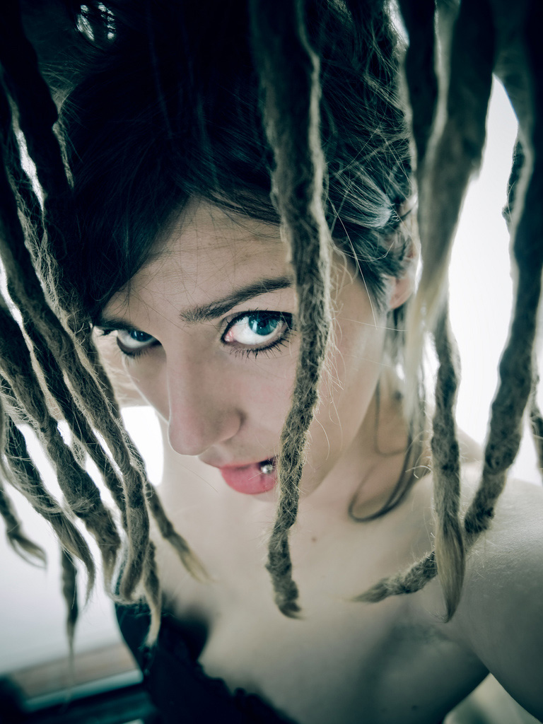 Avrei preferito un diaframma più chiuso per rendere più nitida la bocca, che, tra il piercing ed il fatto che è semi-aperta non mi convince del tutto.