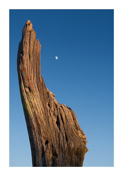 Uno scatto minimale ma pieno di fascino con il tronco che nella sua curvatura sempre quasi voler accogliere la luna che cade..