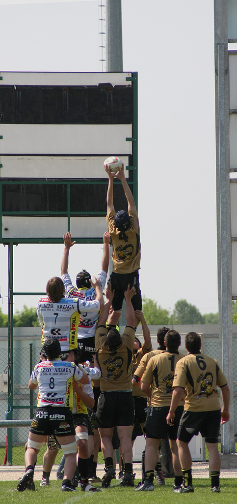 Esistono però anche momenti corali in una azione di gioco e di questi momenti corali nel rugby ne esistono molti. La toche è uno di questi è un momento che sta assieme perchè tutti i giocatori vi collaborano per spingere il secondaliana la su in cielo a conquistare il pallone. E' questo il senso della mia foto.