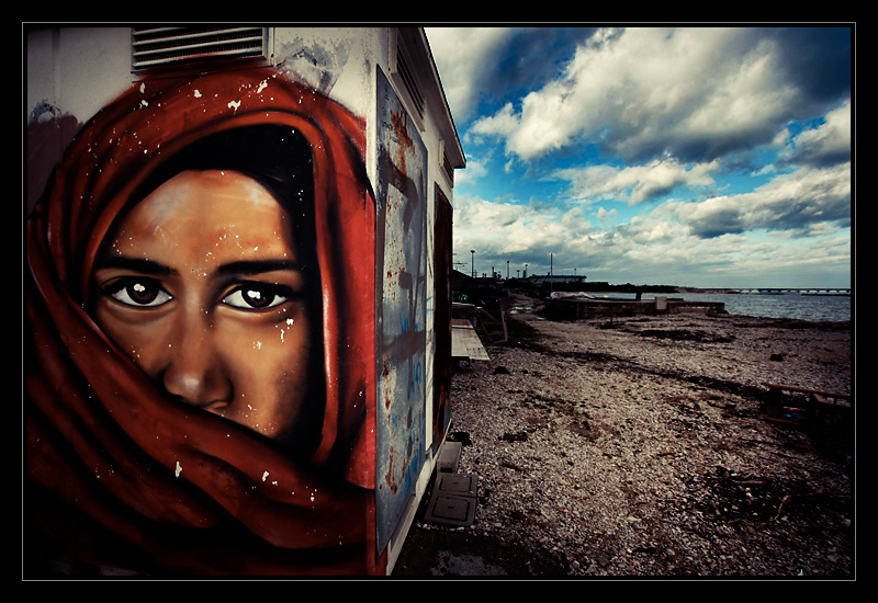 mi sono limitato a regolare livelli e contrasto con delle mascherature in base alle zone e a quello che volevo io come risultato e quindi ho bilanciato l'esposizione in maniera "irreale" nel senso che la luce solare appariva leggermente diversa, il murales era parzialmente in ombra ma nella foto ho usato il flash sul muro per illuminarlo, ho sottoesposto contemporaneamente di 1stop per mantenere leggibilità delle alte luci nel cielo, vignettato visto che il mio 10-22 non vignetta (maledetto a lui ) quindi il tocco finale è stato in post produzione usare i penelli scherma e brucia per dare volume e tridimensionalità alle nuvole che a causa della foschia e del sole risultavano un po appannate ....... per finire regolazione delle curve sui singoli colori per simulare il cross processing