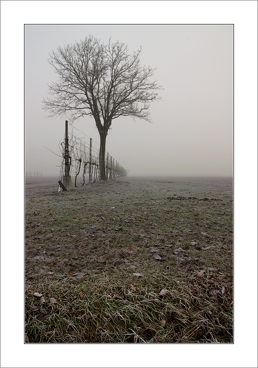 Bello il dialogo fra i rami che si abbarbicano alla staccionata e quelli ancor nudi dell'albero solitario.