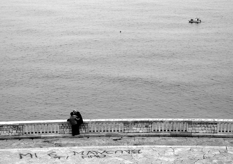 La trovo meno scontata perchè mi pare di intravedere che i due siano una coppia un pò più su negli anni; è un richiamo ad un amore ritrovato, come suggerisce la frase, e magari pure la barchetta (forse questo è più scontato) ci può stare, come simbolo di distanza/viaggio.