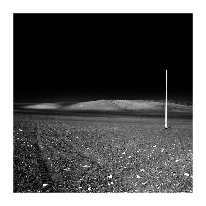 Le tue immagini mi piacciono, sono bn con dei neri sempre molto marcati e profondi, come questa, caratterizzata da una morbida collina ed il palo che come un corpo estraneo si immerge totalmente, buona anche la profondità data dai solchi di un trattore. Bentornato, alla grande Ok!