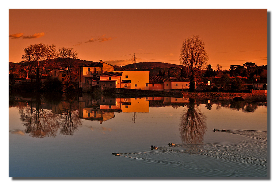| Complimenti per la composizione che appare ben curata e raccoglie in se molti elementi caratteristici di un paesaggio. Hai fatto bene ad attendere le anatre passare perchè hanno reso molto più gradevole l'immagine. La luce presente è probabilmente dovuta all'effetto di un filtro credo, ma sembra ben intonata con le caratteristiche del luogo. Un saluto Ros..