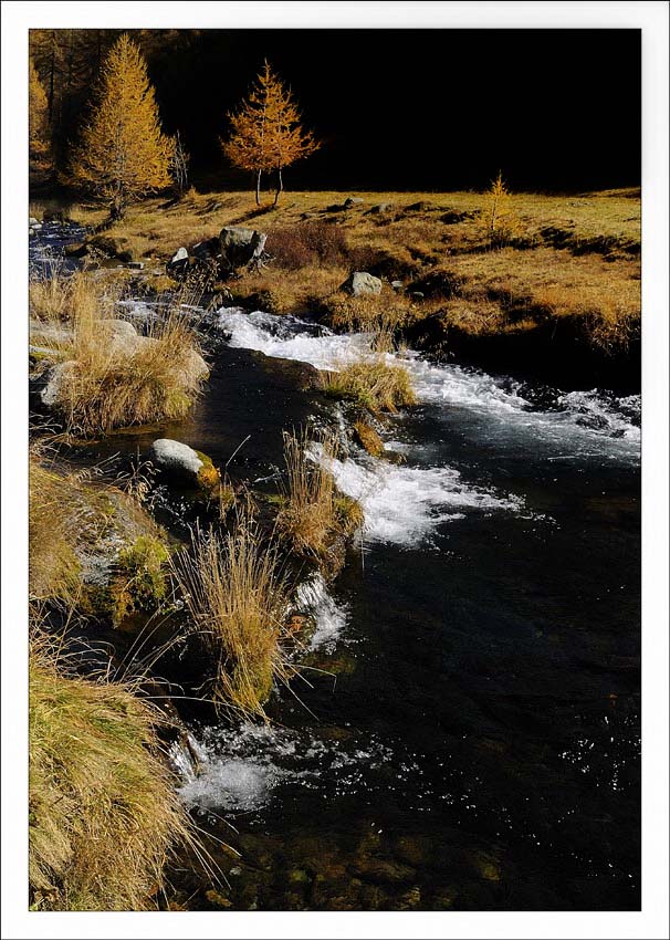 originale...la compo e' molto buona;bellissimo il nero del ruscello cui gli fa eco il nero dello sfondo ed entrambe i neri mettono in risalto gli altri colori ed il tutto;dando piu' mdc secondo me la foto si rovina perche' di mdc c'e' ne gia abbastanza...comunque a me piace molto e la metto fra le tue piu' belle...ciao