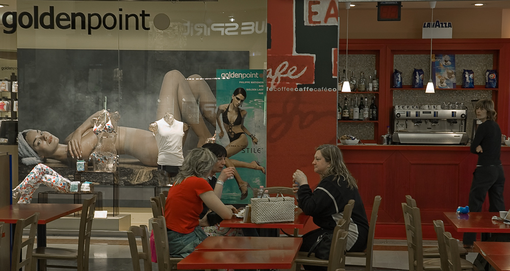 Molto carina, la donna sulla destra sembra "esclusa" dal crocchio. Divertente il contrasto del gruppetto con lo sfondo del cartellone pubblicitario. C'è del mosso, le mani delle donne sedute, forse evitabile con un tempo di esposizione più breve. _________________ Passed |