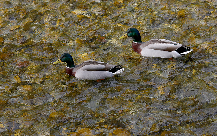 Una cosa che ha attirato la mia attenzione è la textutre generata dall'acqua sui sassi del fondo...per i 2 germani che dire.... il punto di ripresa alto ha esaltato solo lo sfondo direi.