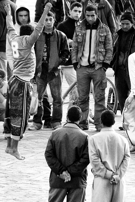 Io non la trovo confusa, ma ben composta. Il tipo che sta saltando (di gioia? per una vittoria?) e tutta la folla che si è radunata quasi a formare un cerchio intorno a lui.