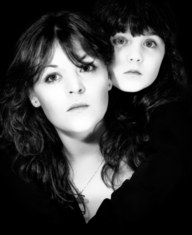 I due pallidi volti che escono dall'oscurità, la somiglianza dei tratti, l'espressività enigmatica della madre e quella ipnotica della figlia, tutto valorizzato da un efficace bn.