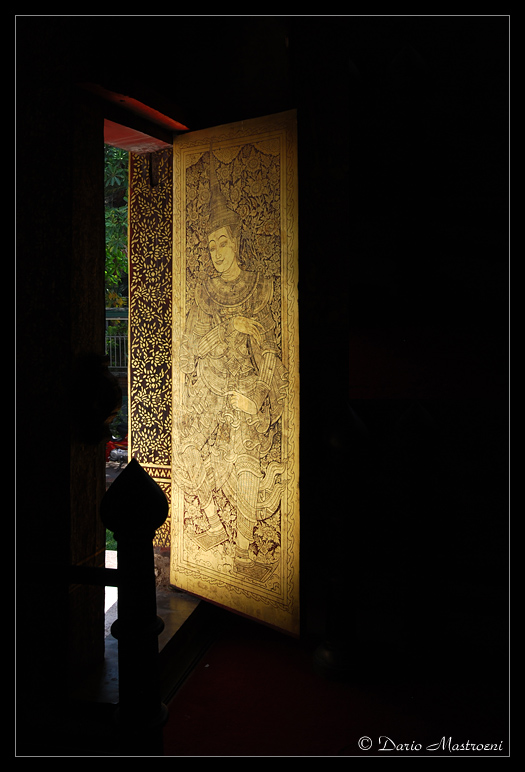 Il nero che rimane all'interno, e sembra catturare ogni cosa, viene vinto e spezzato dall'oro di questa porta, su cui si disegna una immagine davvero particolare.. bella anche la sagoma nera di quell'elemento più a sinistra..