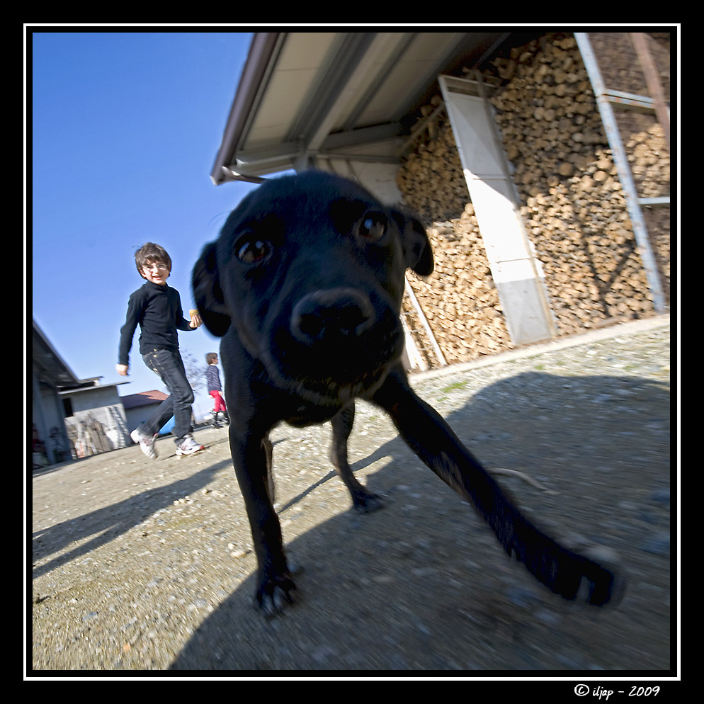 @ Iose: no no non fraintendiamo!!! il cagnino non era assolutamente "torturato" io ho colto un espressione che lo fa magari intendere ma era un cagnino più che vivace e giocoso e si rincorrevano a vicenda bimbi e cane (sopratutto quando i bimbi avevano pane e salame come si vede dalla foto). Per farvi capire ho provato molti scatti per riprenderlo ma il più delle volte appena mi accucciavo era più veloce lui a saltarmi addosso leccandomi tutto (obbiettivo compreso)!!!
