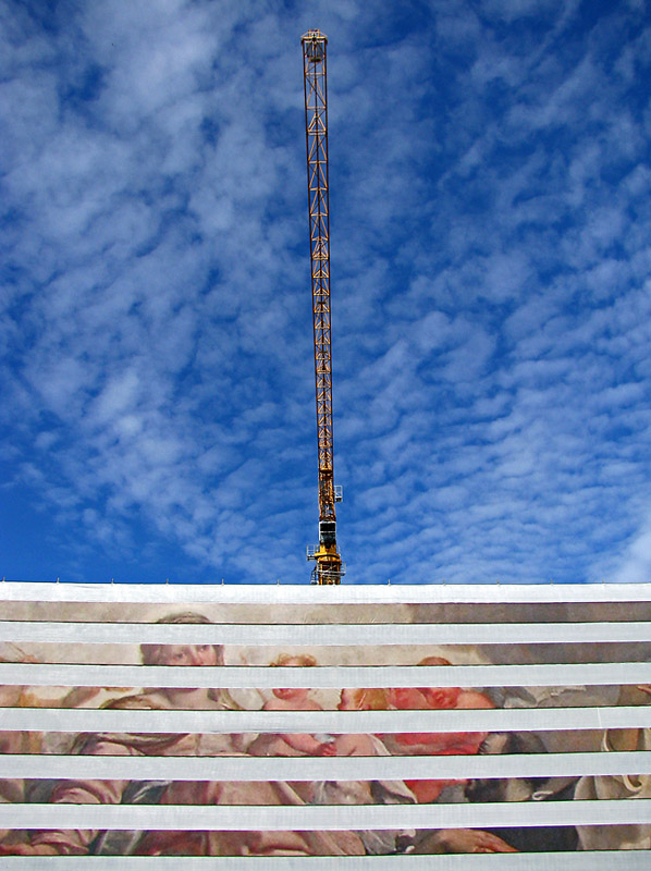 ti dico che la trovo interessante e mi piace ma ci trovo un piccolo difetto in fase di scatto che non so se aggiustabile con un crop mi riferisco al fatto che la gru pende a sx ma la linea del dipinto e' orrizontale e ok da qui il problema in fase di composizione io proverei a raddrizzare la gru e valuterei le due se gia' non l'hai fatto ciao _________________ maurizio PaP-VaV |