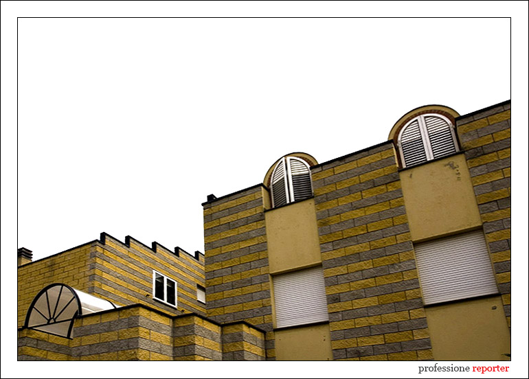 Trovo che il cielo totalmente bianco sia un ottimo sfondo; si sposa bene con le tonalità dell'edificio.
