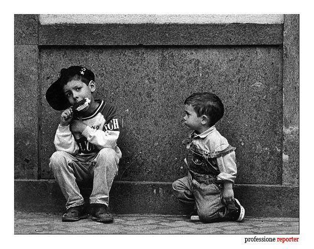 dietro la foto c'è una piccola storia...il bambino col gelato, da dietro le transenne, non riusciva a vedere la festa in piazza, il muro degli adulti gli impediva la visuale. Di fronte al suo pianto dirotto, il padre gli comprò il gelato...e lì è iniziato il dramma del bambino di destra...