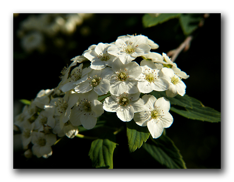 Ringraziamenti a Salvatore, NEROAVORIO e Franco, e doppi ringraziamenti a pigi47 e Mr.T. per i commenti qualificati e i suggerimenti. Riguardo al diffondere meglio la luce dove il sole era preponderante, come suggerite di fare in casi simili? E riguardo a l clonare la parte alta, andrebbero tolte sia le foglie verdi sia lo sfocato dei fiori bianchi sul retro, o solo questi ultimi? (come idea mi ci piacevano, come contrappeso all'immagine, ma capisco che la macro ha i suoi canoni che io per ora conosco assai poco, e sono abbastanza diversi da quelli dei paesaggi su cui più spesso cerco di operare - e poi anche lì ho tutto da imparare, in realtà). Ho trovato difficilissimo inquadrare i fiori di biancospino (un fracco di tentativi mal riusciti) per via del vento che benché debole agitava i ramoscelli un po' troppo per le mie capacità, e anche per la scarsa abitudine a manovrare con efficienza la testa del cavalletto (ne ho presa una a sfera con sgancio rapido a frizione, ma per ora sono ancora molto impacciato nel manovrarla).