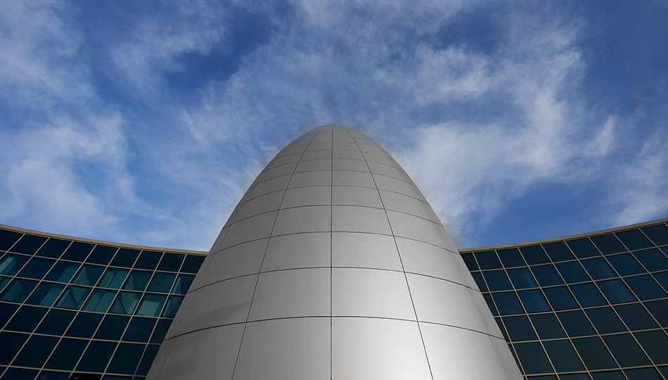 Visione molto particolare e piacevole di questa struttura,la parte grigio metallica gli trasmette un'ambientazione traslata nel futuro,peccato l'ombra che si vede sulla sx in basso(parere personale).