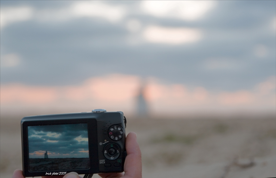 Tempo fa ho scattato una foto ad una persona che disegnava ciò che io da dietro stavo fotografando, ma questa è ancor meglio, riprendere il paesaggio attraverso il display di un'altra fotocamera è geniale.