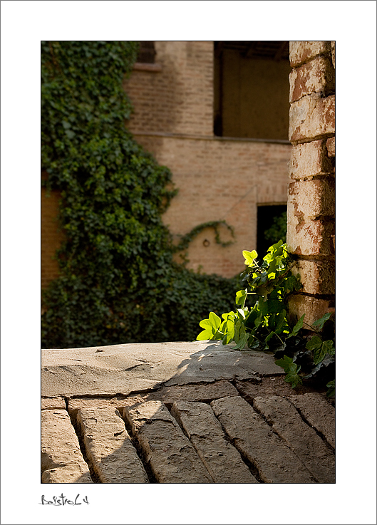 Suggestivo questo raggio di sole che illumina il pp e riempie di Vita queste foglioline...baluardo estremo del trionfo della Vita e della Natura...mi hanno sempre affascinato i particolari vegetali nati in posti improbabili...un altro particolare che mi piace moltissimo è il riccio del verde rampicante sul lato opposto...