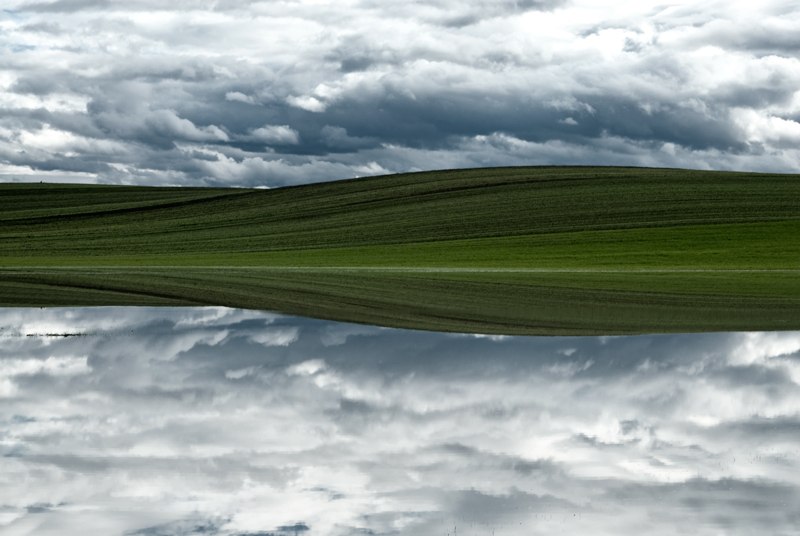 Ciò che ha di bello questa immagine non sta nella simmetria, nelle linee, nel colore, nel cielo, ecc. ma nel fatto che non pare ritratta in natura, mentre invece lo è. Volendo, c' è solo quel piccolo ciuffetto di erba affiorante a sx che rompe la perfezione del riflesso e rivela, più di altro, che è tutto naturale.