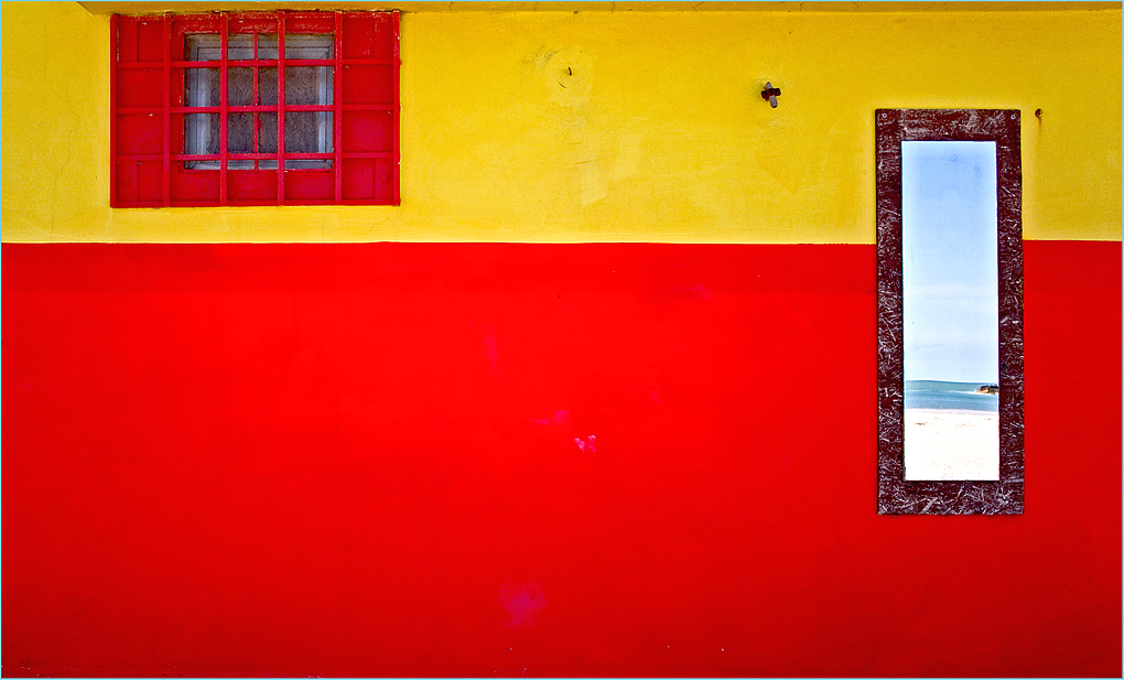 Splendido intuito e cromia, secondo il mio personale parere x essere uno scatto perfetto manca una persona che osserva il mare allo specchio.