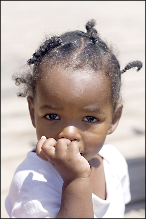 Tutu',bambina capoverdiana di 2 anni e mezzo,incontrata insieme alla sua mamma sul pontile,in attesa dell'arrivo del papa' pescatore...isola del sale,marzo 2009