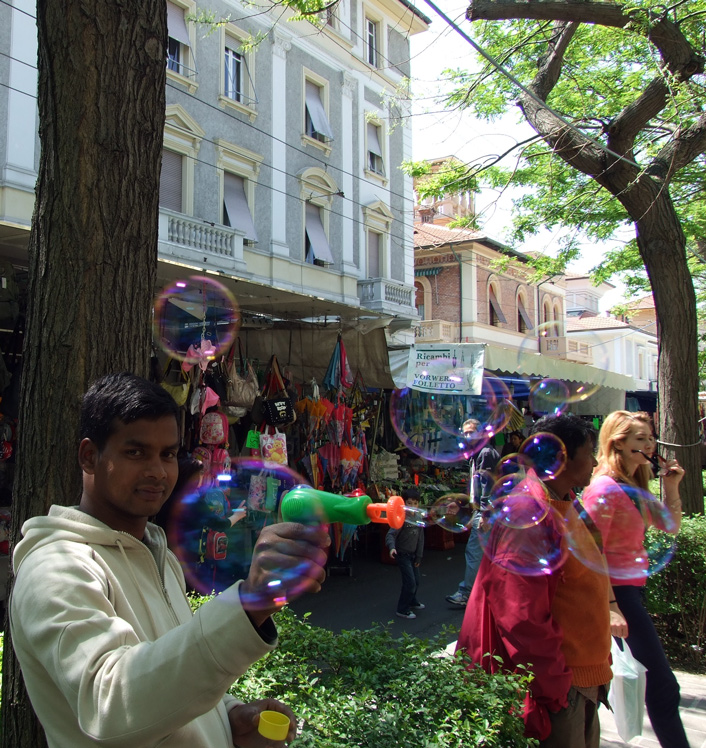 Non male, anche se avrei aspettatto un attimo che il protagonista guardava altrove ...magari proprio le bolle.