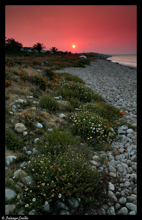 Complimenti! I fiori e i sassi in primo piano catturano l'attenzione, regalando allo scatto qualcosa che lo rende più interessante di una "semplice" foto al tramonto (che sarebbe già bella di suo). Il tuo solito taglio fotografico, che posiziona l'orizzonte a 3/4 dell'altezza dell'immagine, è sicuramente efficace e d'effetto!  |