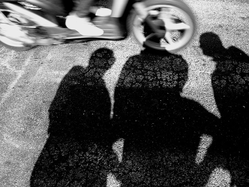 L'immagine in se la trovo funzionale, mi colpisce quello che credo sia la tua ombra che fusa insieme all'ombra del soggetto alle tue spalle da vita a una figura alquanto bizzarra, oserei dire dalle fattezze quasi mitologiche dei centauri, guerrieri dal corpo di cavallo e uomini dal tronco in su.