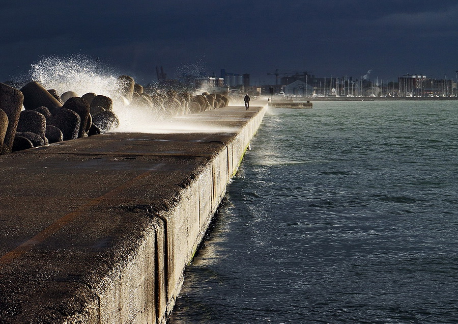Hai ottenuto uno scatto davvero speciale, introdotto magistralemnte dalla bella diagonale e corroborato dal controluce che fa brillare l'onda contrapponendola efficacemente al livido colore del cielo.