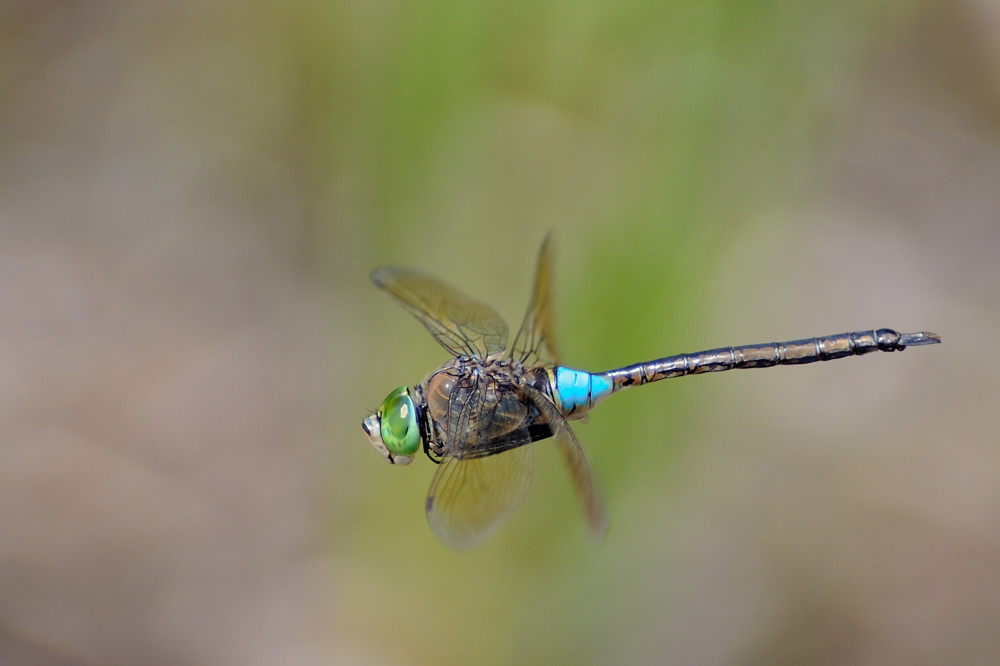 Una libellula ripresa al volo in maniera egregia.