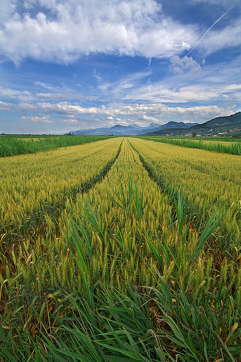 uno scatto dalla campagna sullo sfondo le Alpi Apuane