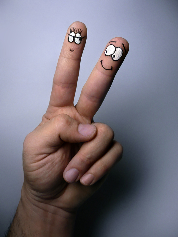 Il due è un numero che può rappresentare una coppia, ma anche un'antitesi, due elementi accomunati da qualcosa, ma anche totalmente opposti tra loro.. o anche due elementi che hanno bisogno l'uno dell'altro per esistere e per completarsi, come lo sono un uomo e una donna. E in questo caso, un'ottima dote di spirito, e di abilità grafica, oltre che fotografica, hanno creato, sui due polpastrelli, due visi così accomunabili ad un uomo e una donna, che fanno sorridere, e lasciano un simpatico sorriso sul cuore. Per me tema centrato, anche se con elementi non originali al cento per cento, ma con una cura grafica e della gestione di luce e colore di ottima fattura..