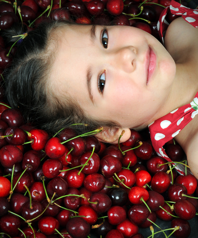 Davvero godibile questo ritratto. Ottima la scelta del vestito e l'accostamento tra la freschezza della bimba (che sembra però un tantino a disagio) e quella delle ciliegie mature e rosse
