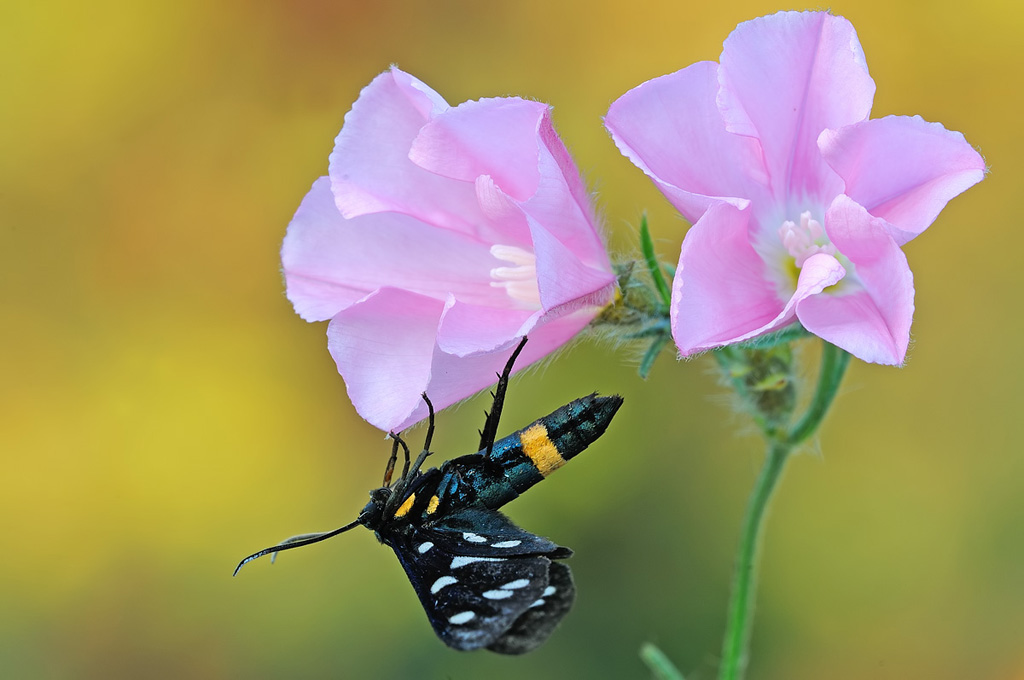 Mentre la Syntomis Phegea non è perfettamente a fuoco sul bordo delle ali forse per un non perfetto parallelismo.