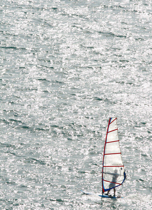 Io ho in galleria una foto simile, ma con due surfer invece di uno: presi l'esposizione su mare in modo da esaltare al massimo il contrasto.