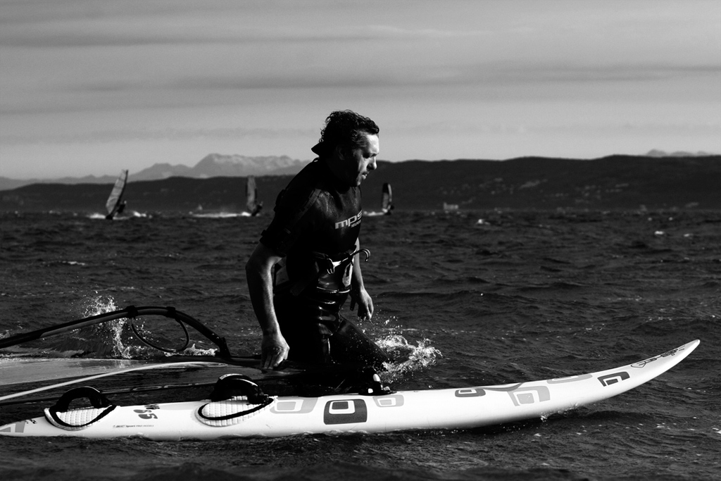 Con il titolo che hai dato vuoi comunicare qualcosa, la resa del surfista.. ma a cosa? La resa al vento inesistente e quindi sconsolato torna a riva? non credo, gli altri filano che è un piacere sullo sfondo e la superficie dell'acqua tradisce la presenza di una brezza tesa.. è forse la resa alle forze della natura? Se si arrende con la brezza, quando c'è vento sul serio che fà?!