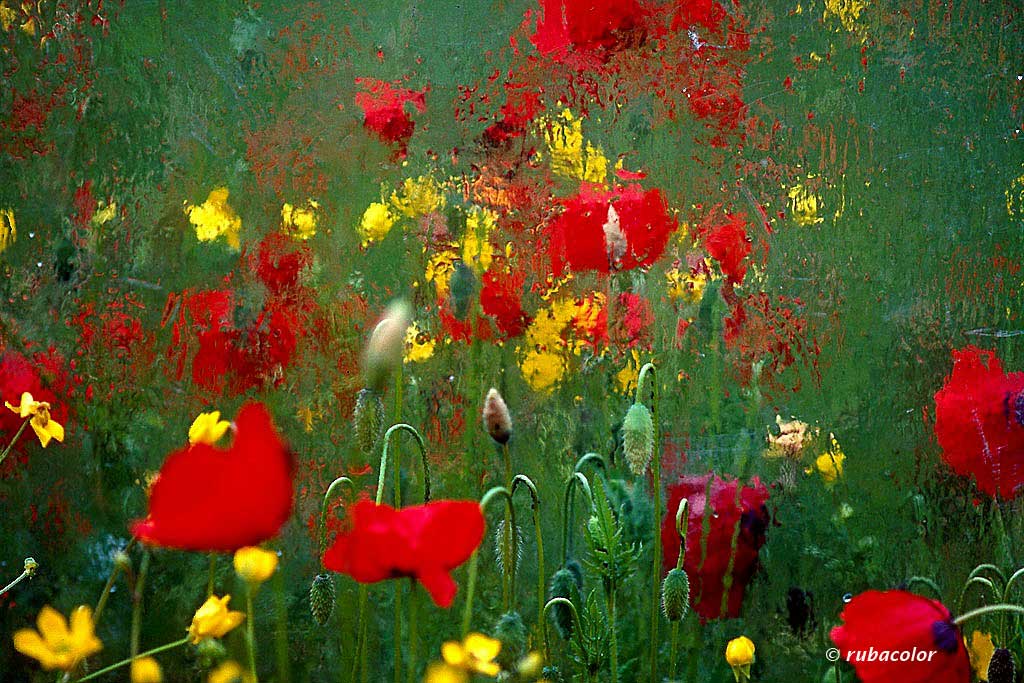 Ora con photoshop queste cose hanno perso valore perchè con due clic anche un bambino è in grado di elaborare ma a quel tempo photoshop non esisteva e la mia tecnica è stata esclusivamente in ripresa. Ho messo in mezzo al campo di papaveri un pannello di plastica argentata tipo stagnola e ho scattato su quei riflessi come in uno specchio!!