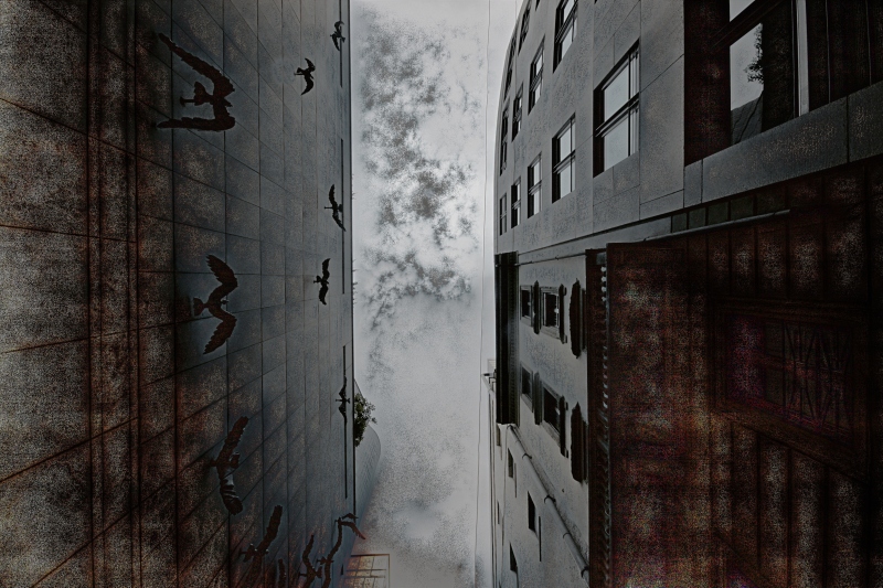 | Mi piace un sacco l'effetto sgranato delle tinteggiature di colre che hai ottenuto. Poi la visone con quegli uccelli si fa piuttosto particolare e greve. Da film. (sembra guardandola di sentire una voce che legge un brano introduttivo autonarrante all'inizio di un film) Ciao Tiziano |