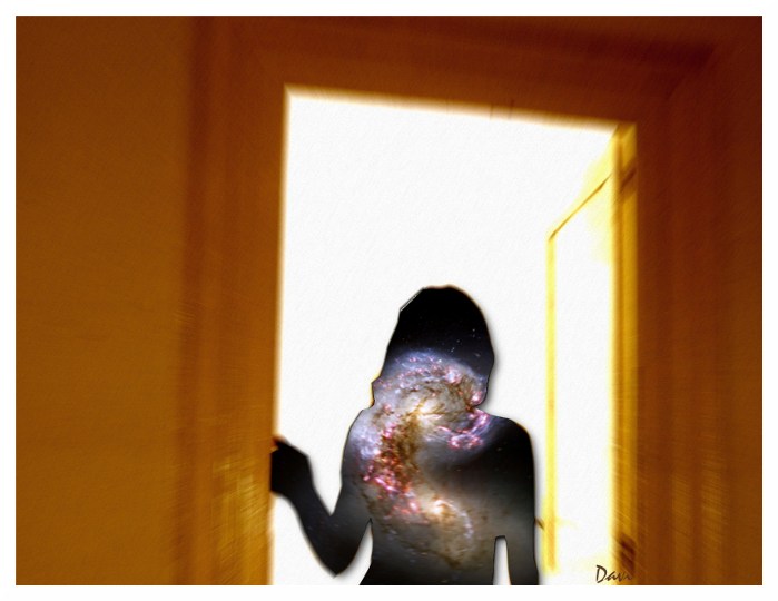 A parte qualche effetto questa è una foto scattata, alla quale ho sostituito le fattezze della ragazza con il layer della galassia.