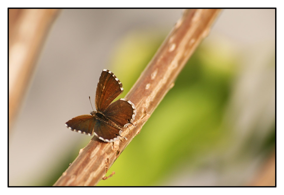 Purtroppo non vedo un punto di messa a fuoco sulla farfalla, che oltretutto mi appare un pò dispersa nel fotogramma... Triste