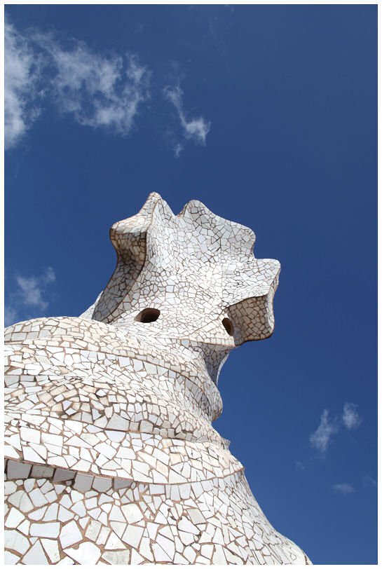 | Un particolare dei famosi camini del famosissimo architetto Gaudì che agli inizi del '900 stupì Barcellona ed il mondo con i suoi lavori "folli" ed avveniristici per l'epoca. |