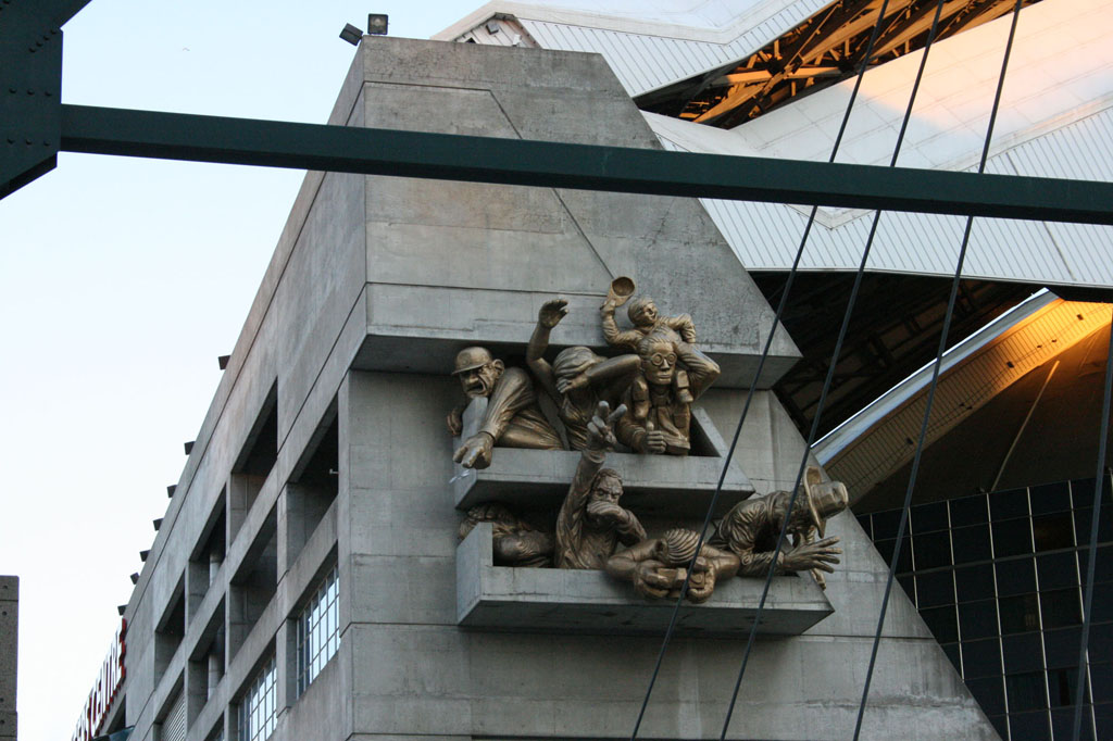 stadio di toronto, vero? a mio avviso ci sono un po' troppi elementi di disturbo davanti a quello che dovrebbe essere il soggetto principale, non capisco la tua scelta,magari voluta. A sinistra spunta un pezzo di cemento dal nulla che avresti potuto evitare, mentre in alto tagli un pezzo di stadio che invece sarebbe stato interessante includere.