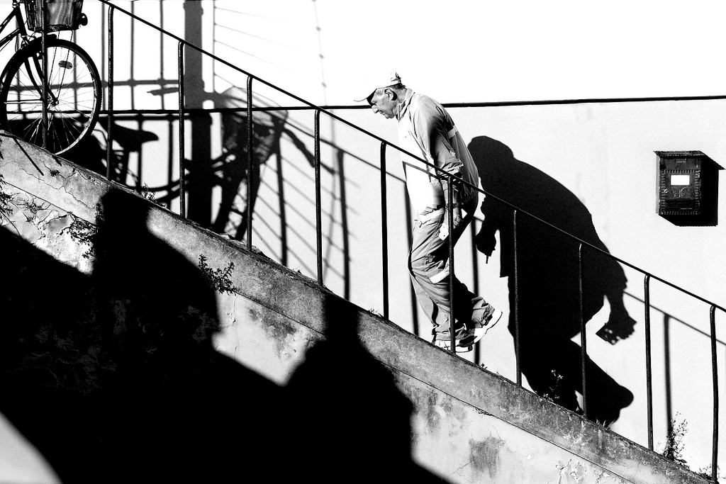 Però se deve prendere la bici l'ombra della stessa lo aiuturà facendogli fare meno strada poichè è più vicina della reale; almeno quello! penserà il nostro amico. A parte gli scherzi: bello scatto, semplice, nitido ed intelligente. A me piace molto! Ok! Un saluto, Simone