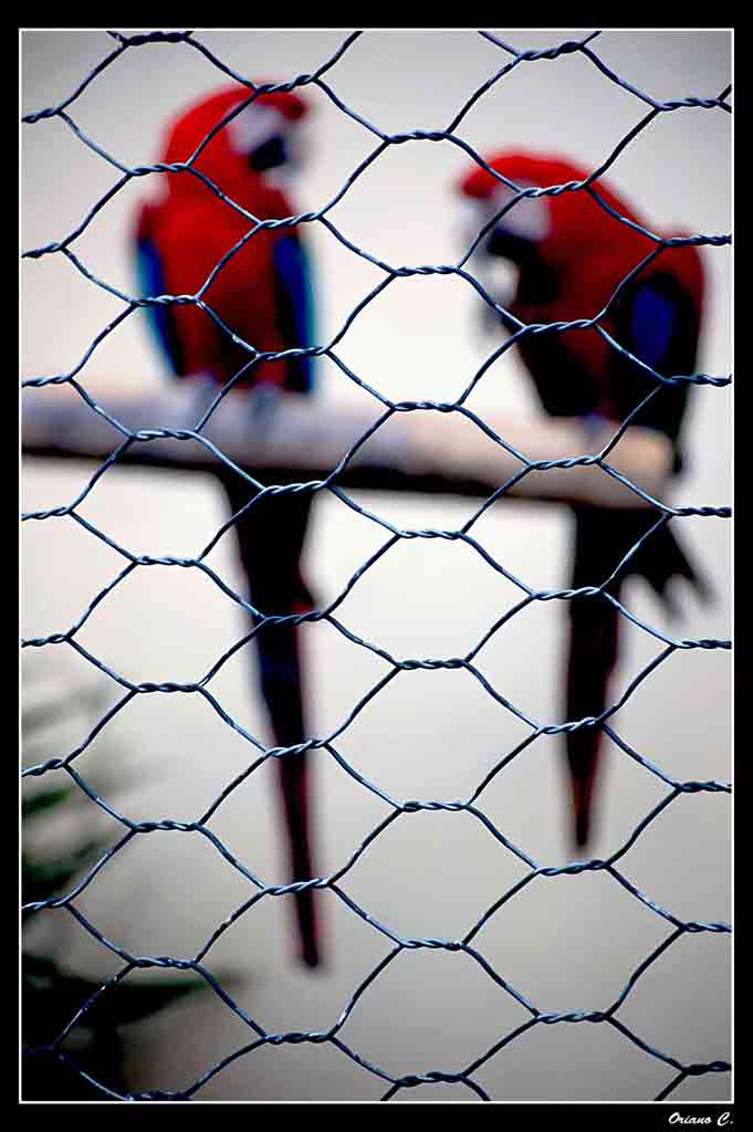 La trovo interessante perché va in senso opposto ai manuali che dicono di sfocare le recinzioni per foto ad animali in cattività.