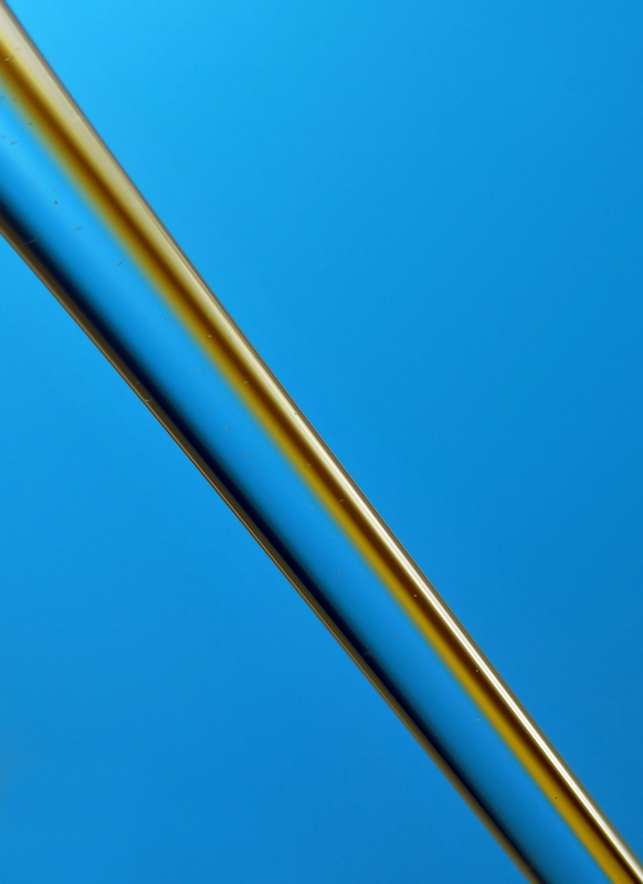 immagine interessante, anche se all'apparenza semplice, la composizione perfetta mette in risalto gli elementi compositivi, il profilato tondo piccolo con la sua ombra fa percepire il piano colorato, l'elemento conico dorato senza ombra si distacca e da tridimensionalità alla composizione.....bravo Ok!