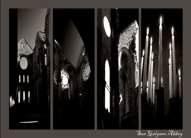 Smile Per i singoli scatti.. trovo che tu abbia fatto una buona scelta di base, nella scelta delle inquadrature.. perché in tutti e quattro i frame hai giocato sulla contrapposizione tra zona molto scura e buia e una parte in cui la luce riesce ad urlare nella sia intensità.. se si guarda con attenzione, questo aspetto c'è anche nella prima a sinistra, nella luce che illumina il pavimento.. mentre in quelle centrali quella che filtra dal rosone riesce a dare quel punto luminoso che serve.. nell'ultima, questa scelta è rispettata dalla luce delle candele..