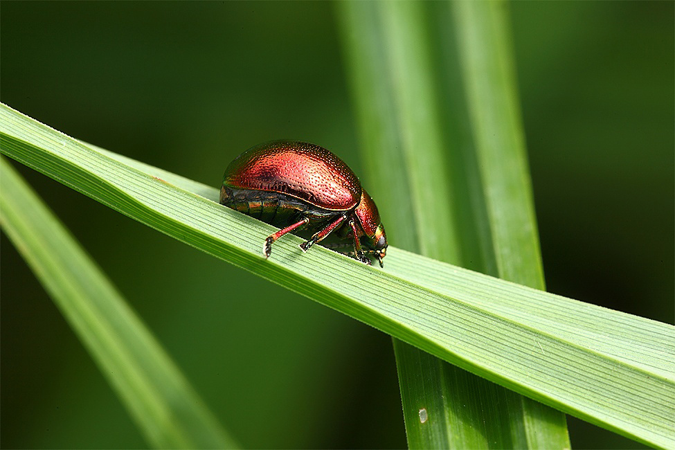 Anche questa non è male, ma se potessi scegliere, porterei a casa quella postata precedentemente. Comunque anche quì vedo che hai saputo gestire i riflessi sul coleottero, poi magari si potrà dire che la luce sul posatoio è un po' forte, ma fili d'erba, foglie e amenicoli vari sono peggio degli specchi, non sempre sono facili da gestirli.