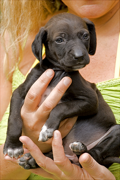 Il ritrattino non sarebbe male, espressione felice della cagnolina, mi piacciono pure le grandi mani che si stringono eloquenti e protettive su questa creaturina curiosa e palpitante.