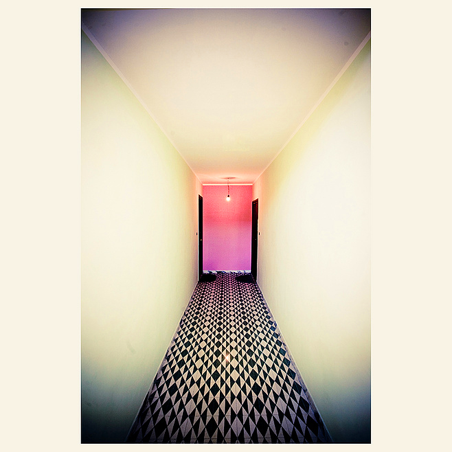 Non fa difetto questa fotografia con aggiunta anche di questa vignettatura che nel caso specifico trovo opportuna per chiudere un po' il fotogramma altrimenti restante aperto per via delle pareti così bianche che riempiono il 90% del fotogramma.