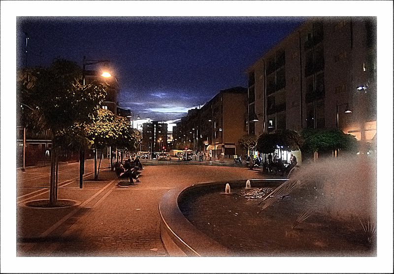 Non spiccatamente forte il contenuto: non si realizza la veduta d'insieme della piazzetta e le uniche forme di attrazione o sono troppo distanti da te (la gente sulle panchine, dove è difficile apprezzarne i tratti, nelle loro masse scure) o troppo vicine e tagliate (la fontana, che da sola poteva essere un soggetto valido, ma così ripresa si pone quasi come elemento di disturbo per la veduta della piazza).